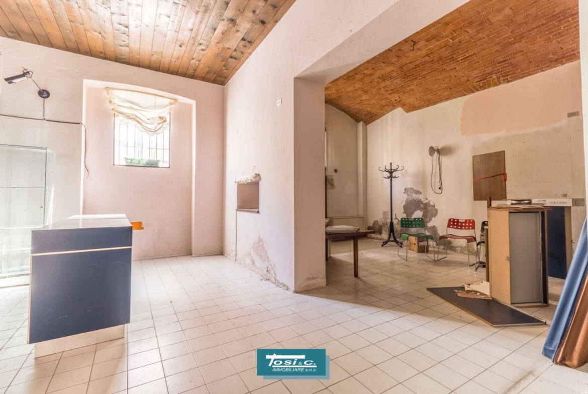 In posizione centrale negozio commerciale di 250 mq con ampie vetrine composto da un ampia zona open space con soffitto a volte in mattoni e una parte in legno e zona retro da utilizzare come magazzino. Bagno.