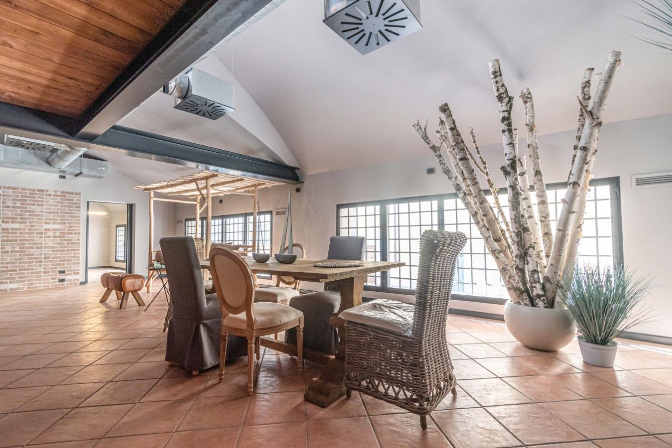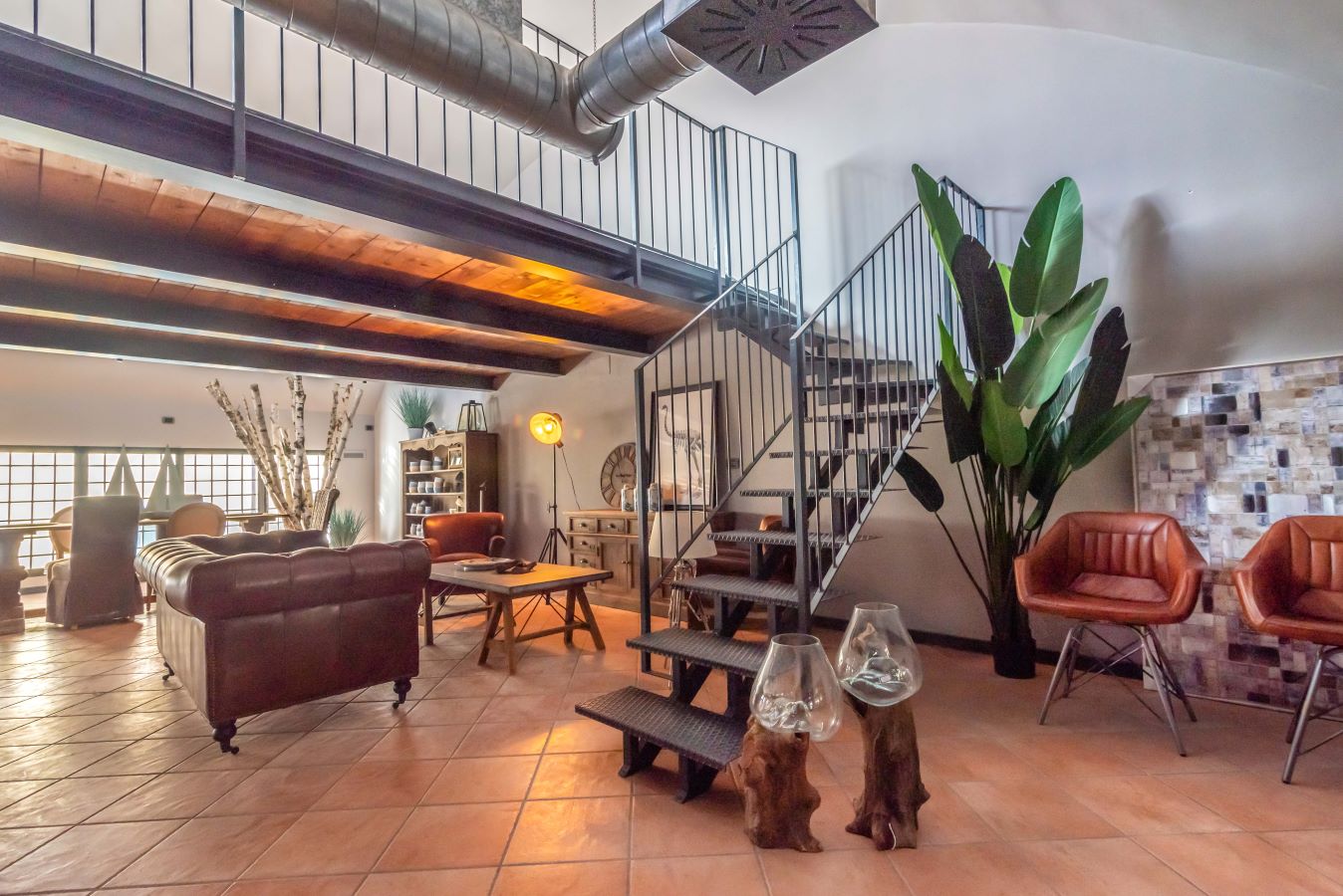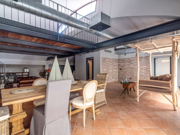 Gli ampi spazi sono la caratteristica del loft. Le vetrate sono il punto di ingresso della luce. All’ interno materiali quali pavimento in vetro e pregiato laminato riscaldano l’ ambiente mentre i dettagli in metallo, ferro e mattoni nonche’ i grandi tubi a vista per la canalizzazione dell’ aria calda donano all’ intera unita’ uno stile moderno, minimal e soprattutto un design industrial.