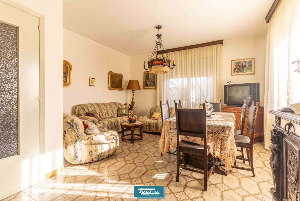 In zona appena fuori dal centro cittadino in contesto di casa di 3 unità abitative appartamento al piano terra composto da ingresso – corridoio, cucina, soggiorno, 2 camere, bagno, ripostiglio. Box auto all’interno del cortile comune. Senza spese condominiali. Termoautonomo.